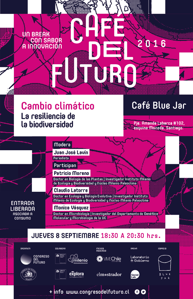 El encuentro lleva por nombre «Cambio climático: resiliencia de la biodiversidad» y se realizará el 8 de septiembre a las 18:30 hrs en el café Blue Jar (Profesora Amanda Labarca 102, Santiago). La entrada es liberada.