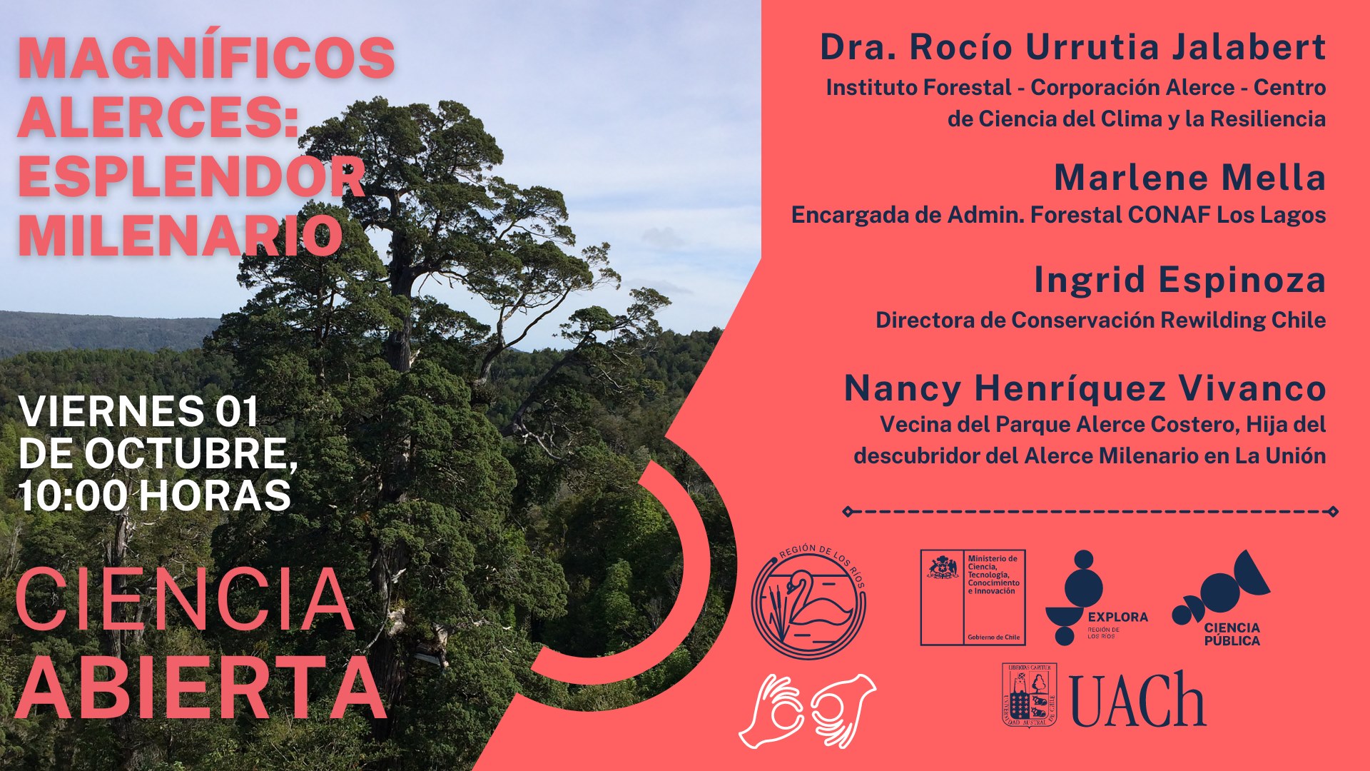 El Par Explora Los ríos tienen el agrado de invitar al evento especial de Ciencia Abierta «Magníficos alerces: esplendor milenario», en donde abordarán la importancia de los alerces milenarios del sur de Chile.