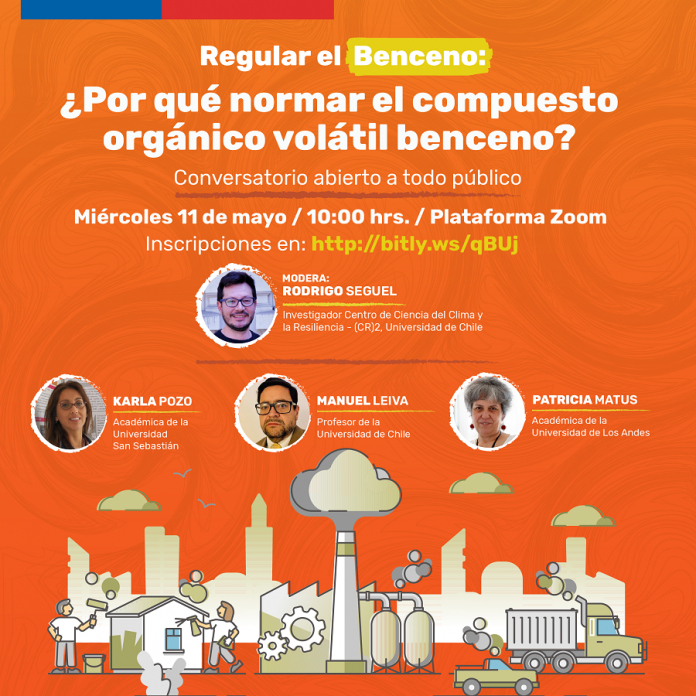 El Ministerio del Medio Ambiente, a través del Departamento de Planes y Normas, le invitan cordialmente a informarse y participar del proceso de consulta pública del “Anteproyecto de la Norma Primaria de Calidad Ambiental para el Compuesto Orgánico Volátil Benceno», a través del webinar ¿Por qué normar el compuesto orgánico volátil benceno?.
