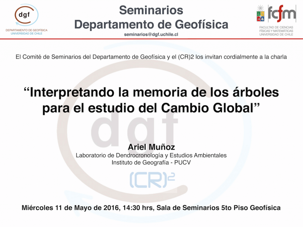 El comité de seminarios del Departamento de Geofísica FCFM U. de Chile y el (CR)2 invitan al seminario «Interpretando la memoria de los árboles para el estudio del cambio