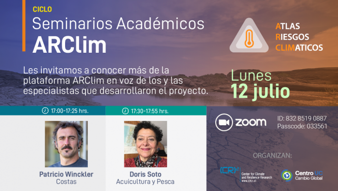 El Centro de Ciencia del Clima y la Resiliencia (CR)2, junto al Centro de Cambio Global UC, tienen el agrado de invitar a la quinta sesión del Ciclo de Seminarios Académicos Arclim, en donde pondrán conocer más sobre esta plataforma en la voz de los y las especialistas que desarrollaron el proyecto.