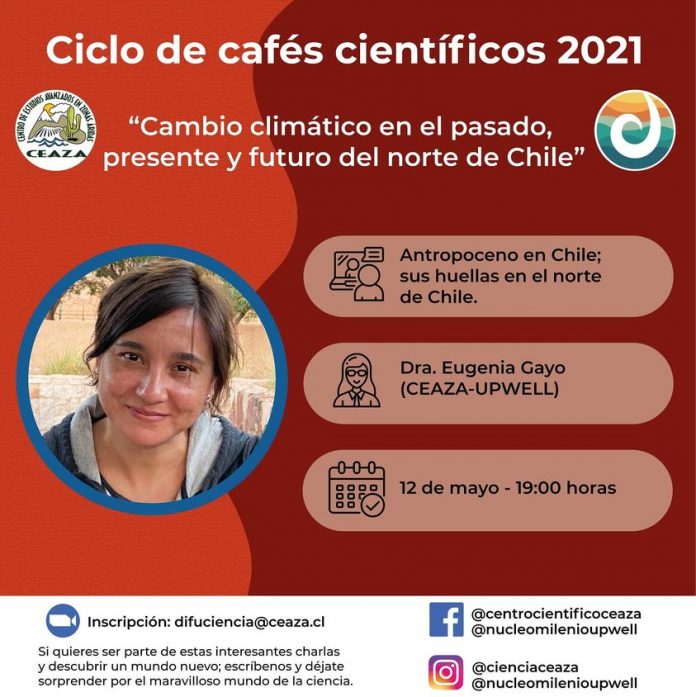 Para conocer más sobre este tema, pero desde una mirada local, este miércoles 12 de mayo, a las 19 horas, se realizará el tercer Café Científico de la temporada 2021, organizado por el CEAZA. En la oportunidad, Eugenia Gayo, Directora e investigadora del Núcleo Milenio UPWELL e investigadora en ecología humana del CEAZA, presentará la exposición “Antropoceno en Chile: sus huellas en el Norte de Chile”.