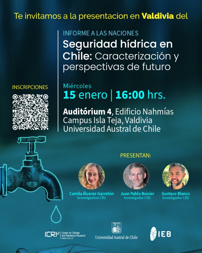 El próximo 15 de enero a las 16 horas, se realizará el lanzamiento en Valdivia del Informe a las Naciones Seguridad hídrica en Chile: Caracterización y perspectivas de futuro.