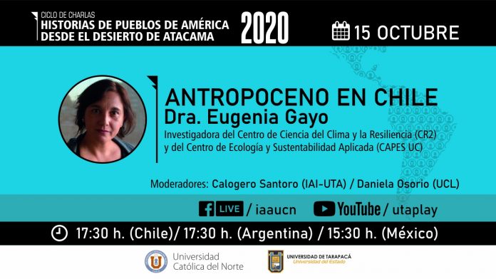 En esta oportunidad contarán con la participación de Eugenia Gayo, investigadora del (CR)2 y del Centro de Ecología Aplicada y Sustentabilidad (CAPES UC), quien dará la charla «Antropoceno en Chile».