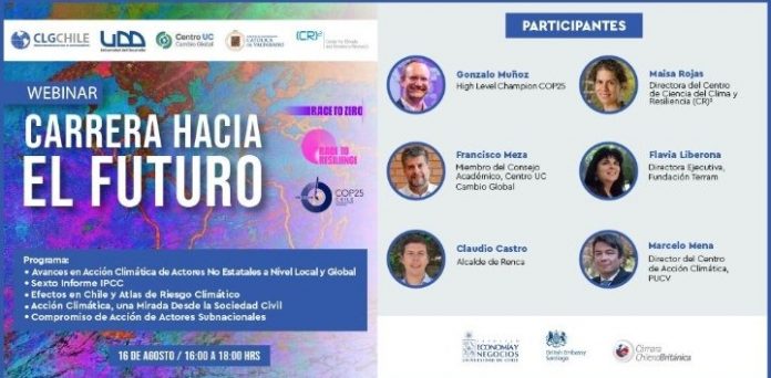 El Objetivo de la actividad es mostrar los avances en acción climática desde las organizaciones no estatales a través de “Race to Zero” y “Race to Resilience”, a nivel mundial y nacional. Al mismo tiempo, destacarán la participación de 5 chilenos que forman parte del Expert Review Group de estas dos iniciativas, y analizarán el último reporte del IPCC sobre cambio climático y sus implicancias para Chile.