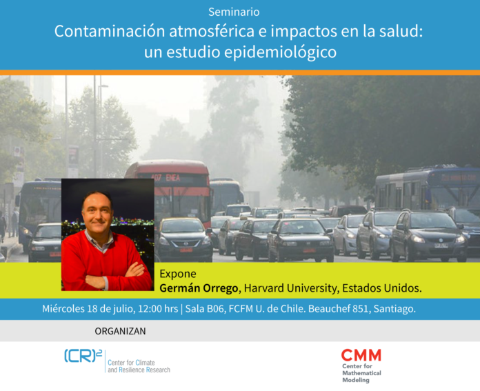 El Centro de Ciencia del Clima y la Resiliencia (CR)2 junto al Centro de Modelamiento Matemático invitan al seminario «Contaminación Atmosférica e impactos en salud. Un estudio epidemiológico” que dictará Germán Orrego de la Universidad de Harvard, Estados Unidos.