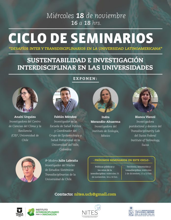 El Núcleo de Investigación-Acción en Interdisciplina y Transdisciplina para la Educación de la Universidad de Chile (NITES), en conjunto con el Instituto Interdisciplinario para la Innovación de la Universidad de Talca, invitan al ciclo de seminarios «Desafíos inter y transdisciplinarios en la Universidad Latinoamericana».