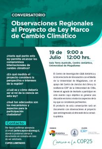 Este viernes 19 de julio se realizará el conversatorio «Observaciones regionales al proyecto de Ley Marco de Cambio Climático».