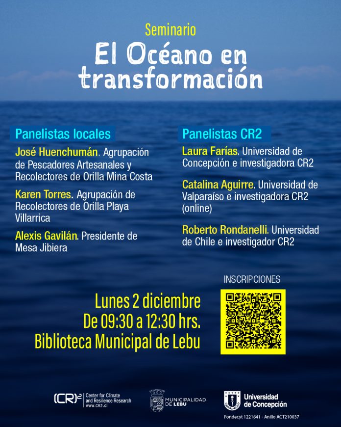 El próximo 2 de diciembre desde las 9.30 am, se realizará el seminario El océano en transformación, en la Biblioteca Municipal de Lebu, ubicada en la calle Mackay #730.
