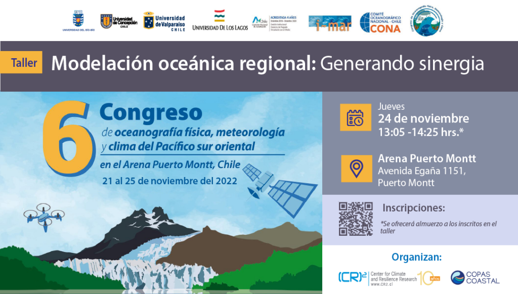 El Grupo de Trabajo Dinámica Océano-Atmósfera (DOCA), del Comité Oceanográfico Nacional (CONA) y el Centro i-mar de la Universidad de Los Lagos invitan al 6to. Congreso de Oceanografía Física, Meteorología y Clima del Pacifico Sur Oriental, a realizarse en el Centro de eventos Arena Puerto Montt.