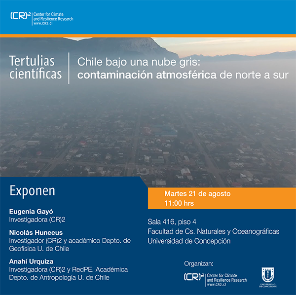 21 de agosto | Tertulia científica (CR)2 “Chile bajo una nube gris: contaminación atmosférica de norte a sur”