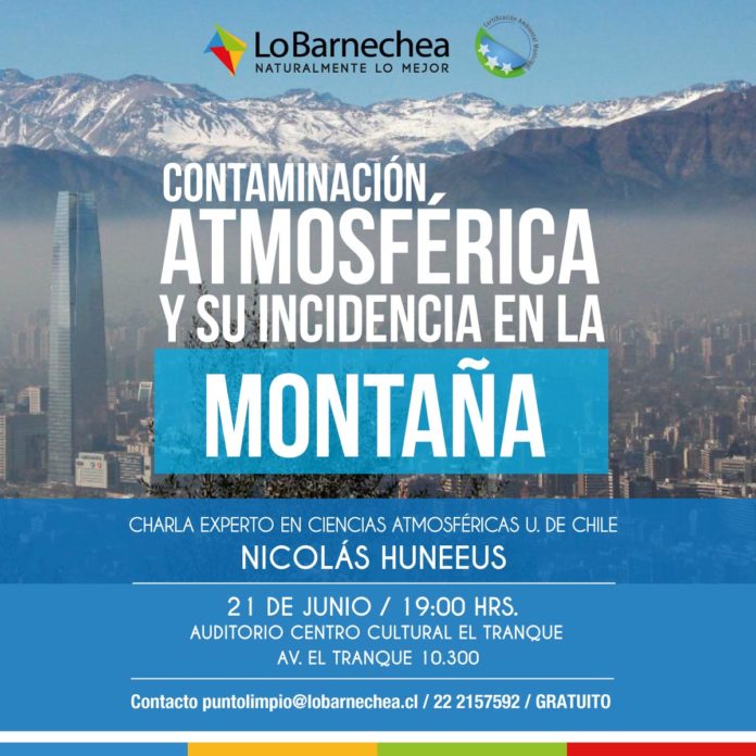 La Municipalidad de Lo Barnechea  invitan a paraticipar de la charla «Contaminación atmosférica y su incidencia en la montaña» que será dictada por Nicolás Huneeus, académico del Departamento de Geofísica de la Universidad de Chile e investigador del Centro de Ciencia del Clima y la Resiliencia (CR)2.
