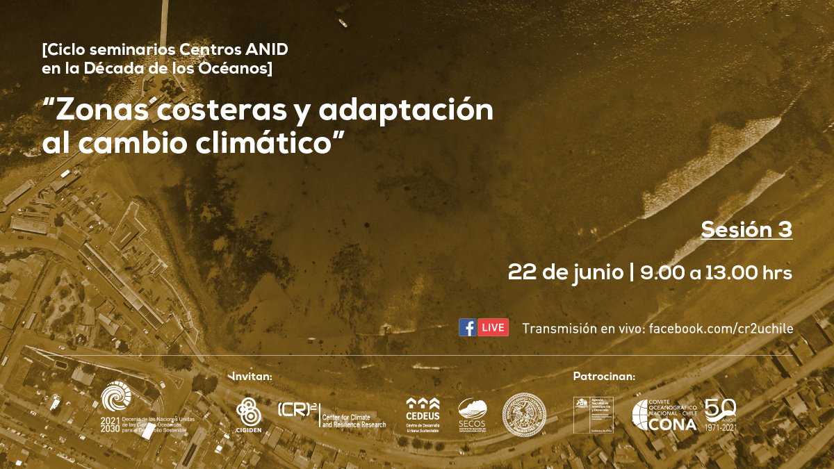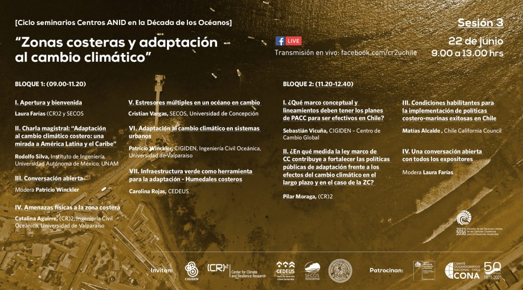 En esta oportunidad, el tema de la tercera sesión será “Zonas Costeras y adaptación al cambio climático” y estará liderado por el Centro de Ciencia del Clima y la Resiliencia (CR)2.