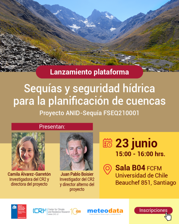 El Centro de Ciencia del Clima y la Resiliencia CR2 invita al lanzamiento de la plataforma de sequías y seguridad hídrica desarrollada en el marco del proyecto ANID/FSEQ210001. Esta plataforma pone a disposición diversos datos nacionales de alta resolución temporal y espacial que permiten evaluar la sequía y seguridad hídrica histórica de Chile, incluyendo datos de clima, cobertura y propiedades de suelo, usos sectoriales de agua y disponibilidad hídrica. En el lanzamiento se presentarán las siguientes herramientas de la plataforma: