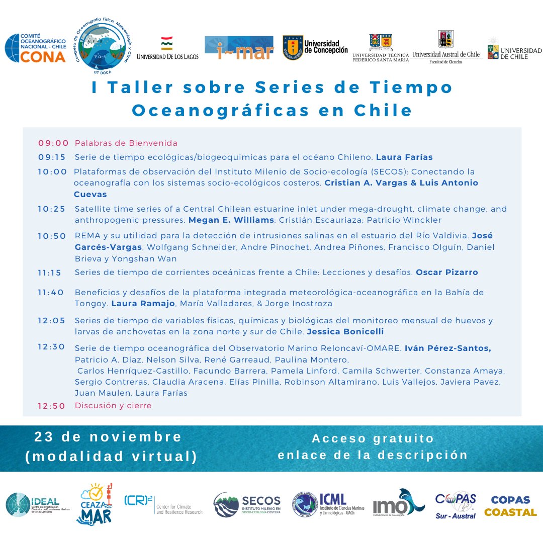 El Grupo de Trabajo Dinámica Océano-Atmósfera (GT DOCA) del Comité Oceanográfico Nacional (CONA), tiene el agrado de invitarlos a participar del “I Taller sobre Series de Tiempo Oceanográficas en Chile»,