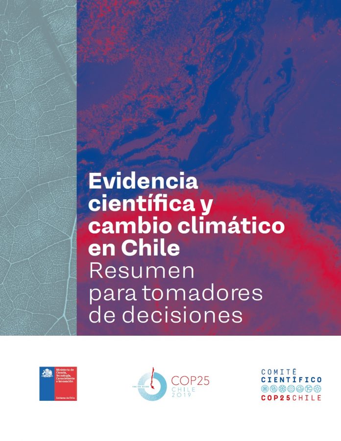 El presente Resumen para tomadores de decisiones del informe «Evidencia científica y cambio climático en Chile», presenta los principales temas abordados y las recomendaciones emanadas de las siete mesas de trabajo del Comité Científico COP25 (Adaptación, Océanos, Criósfera y Atártica, Biodiversidad, Ciudades, Mitigación y Energía, y Agua), compuestas por especialistas de distintas universidades del país.