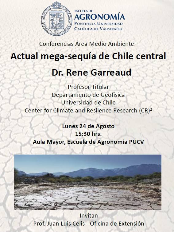La Escuela de Agronomía de la PUCV invita a la charla «Actual megasequía en Chile central» dictada por René Garreaud, subdirector del (CR)2 y académico DGF FCFM U. de Chile.