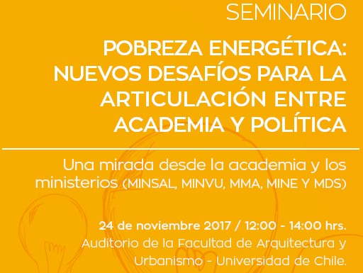 La RedPE te invita a participar del Seminario “Pobreza Energética: nuevos desafíos para la articulación entre Academia y Política”, a realizarse el 24 de Noviembre de 12:00 a 14:00 hrs en el Auditorio de la FAU, UChile.