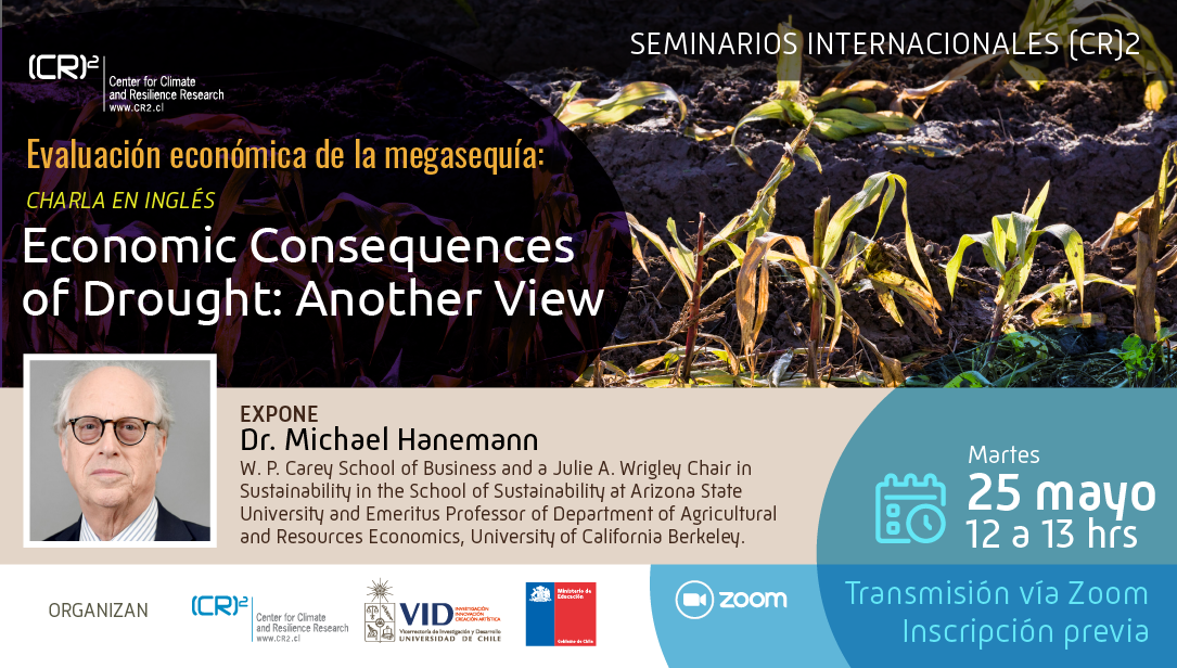 Este ciclo consta de tres seminarios que se llevarán a cabo en los meses de abril, mayo y junio, respectivamente. El segundo seminario de este ciclo se titula «Economic Consequences of Drought: Another View», que será realizado por el Dr. Michael Hanemann, W. P. Carey School of Business and a Julie A. Wrigley Chair in Sustainability in the School of Sustainability at Arizona State University and Emeritus Professor of Department of Agricultural and Resources Economics, University of California Berkeley.