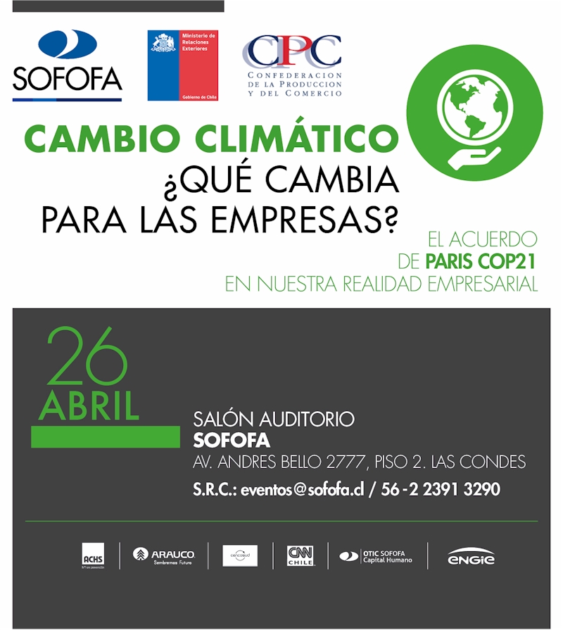 En este seminario se analizarán los alcances del acuerdo de París logrado en la COP21 y cómo se enmarca en la realidad de las empresas chilenas.