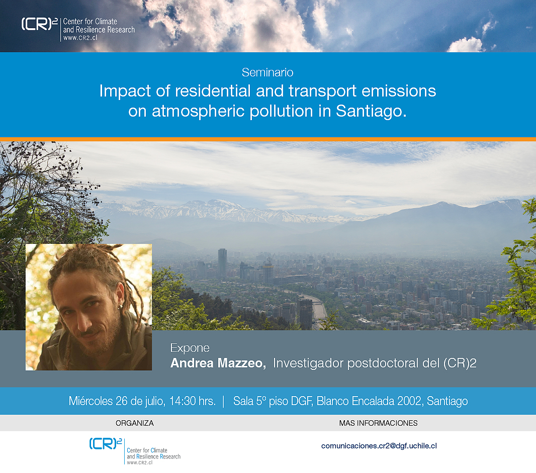 26 de julio | Seminario DGF-(CR)2 «Impact of residential and transport emissions on atmospheric pollution in Santiago»