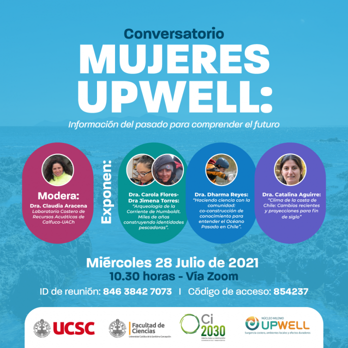 La Facultad de Ciencias de la Universidad Católica de la Santísima Concepción, Ciencia para la Innovación2030 y el Núcleo Milenio Upwell, tienen el agrado de invitar al Conversatorio «Mujeres UPWELL: Información del pasado para comprender el futuro».