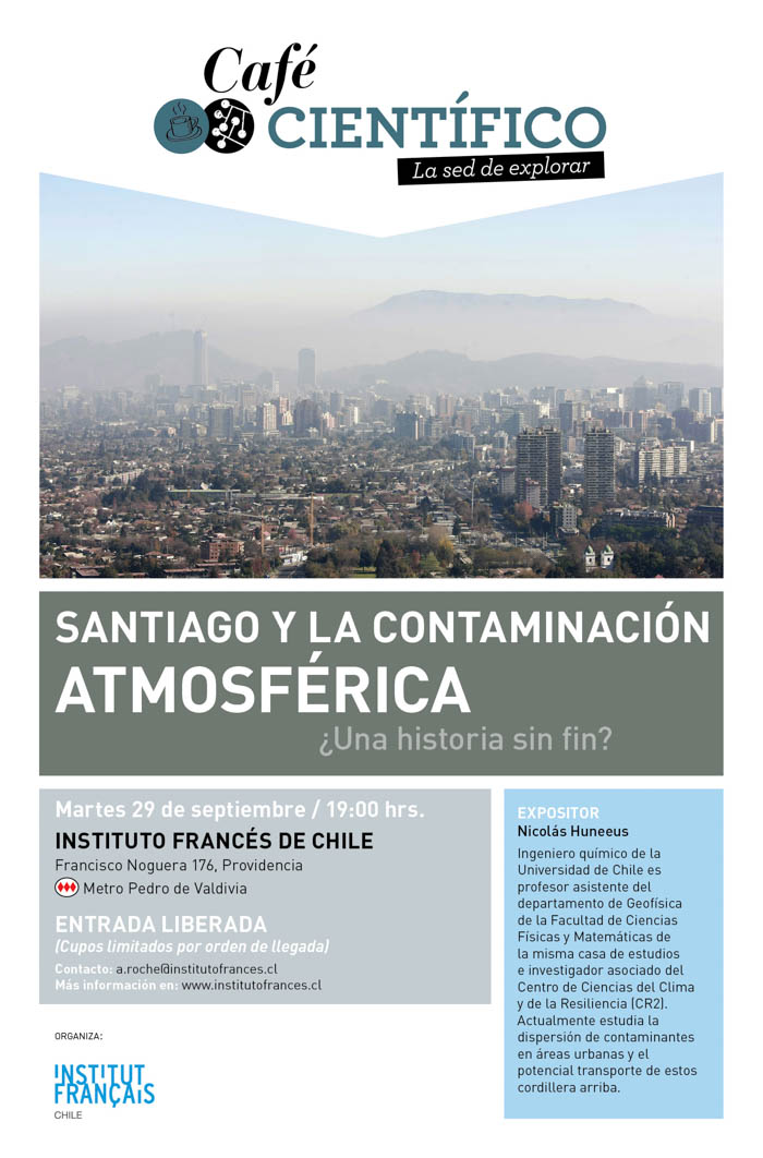 Los invitamos al Café Científico organizado por el Instituto Francés de Chile que se llevará a cabo el martes 29 de septiembre a las 19:00 hrs, donde expondrá Nicolás Huneeus, investigador asociado del Centro de Ciencia del Clima y la Resiliencia (CR)2 y profesor del Departamento de Geofísica FCFM de la Universidad de Chile.