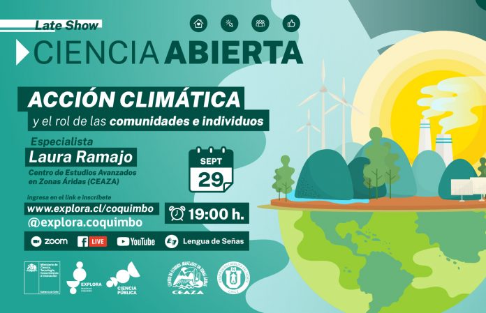 El Proyecto Explora Coquimbo, del Ministerio de Ciencia, Tecnología, Conocimiento e Innovación y ejecutado en la región por la Universidad Católica del Norte, queremos invitarte a inscribirte y participar del Late Show: «ACCIÓN CLIMÁTICA Y EL ROL DE LAS COMUNIDADES E INDIVIDUOS»