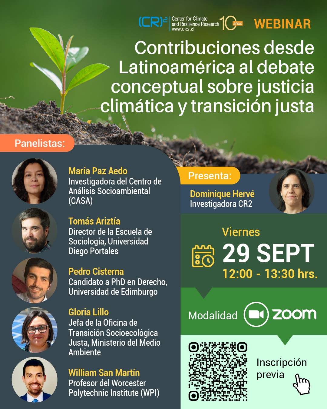 El panel será moderado por Cecilia Ibarra, investigadora del CR2 y académica de la Facultad de Gobierno de la Universidad de Chile.
