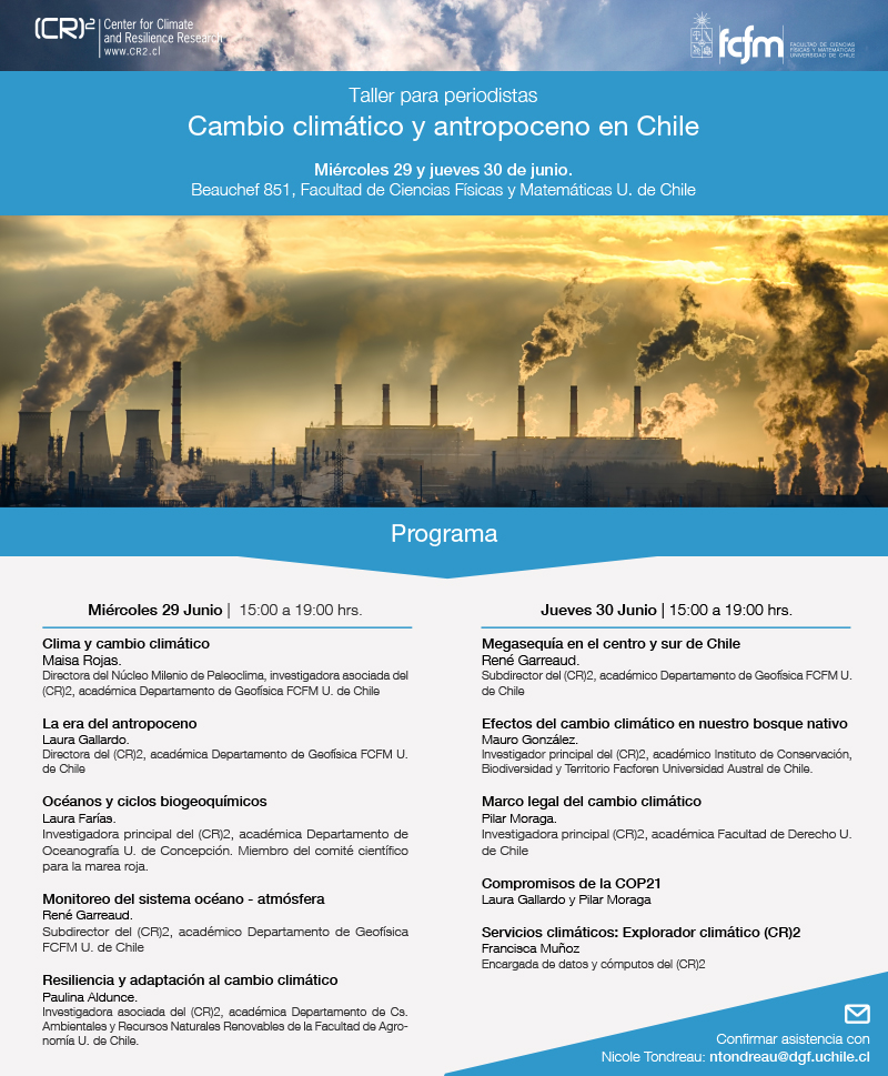 Centro de Ciencia del Clima y la Resiliencia (CR)2 invita al taller para periodistas «cambio climático y antropoceno en Chile».
