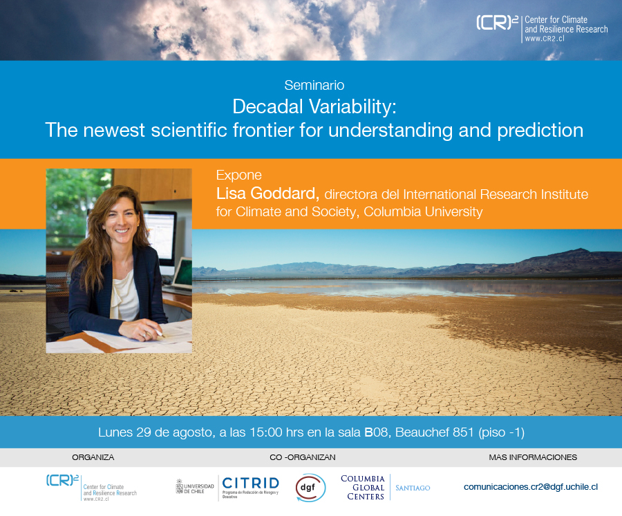 El (CR)2 invita a participar del seminario «Decadal Variability: The newest scientific frontier for understanding and prediction” dictado por Lisa Goddard, directora del International Research Institute for Climate and Society, Columbia University.