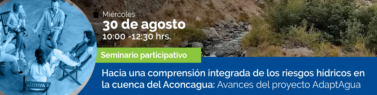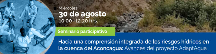 Les invitamos al seminario participativo “Hacia una comprensión integrada de los riesgos hídricos en la cuenca del Aconcagua: Avances del proyecto AdaptAgua”, organizado por el Centro de Ciencia del Clima y la Resiliencia (CR)2 de la Universidad de Chile, en colaboración con el Centro de Acción Climática-PUCV y la ONG Vertientes del Sur.