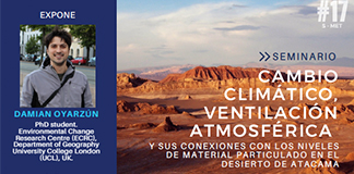 El Centro de Ciencia del Clima y la Resiliencia (CR)2 y el Departamento de Geofísica FCFM U. de Chile invitan al seminario “Cambio climático, ventilación atmosférica y sus conexiones con los niveles de material particulado en el desierto de Atacama”, dictado por Damián Oyarzún, estudiante de Doctorado en el Environmental Change Research Centre (ECRC), Department of Geography, University College London (UCL), UK.