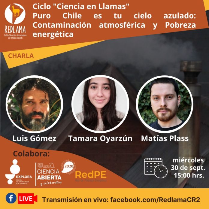 La Red de Educación Latinoamericana por el Medio Ambiente (RedLama) y PAR Explora RM Sur Poniente, tienen el agrado de invitar a su ciclo “Ciencia en llamas”, iniciativa completamente online que trae en esta oportunidad la charla “Puro Chile es tu cielo azulado: Contaminación atmosférica y pobreza energética”.