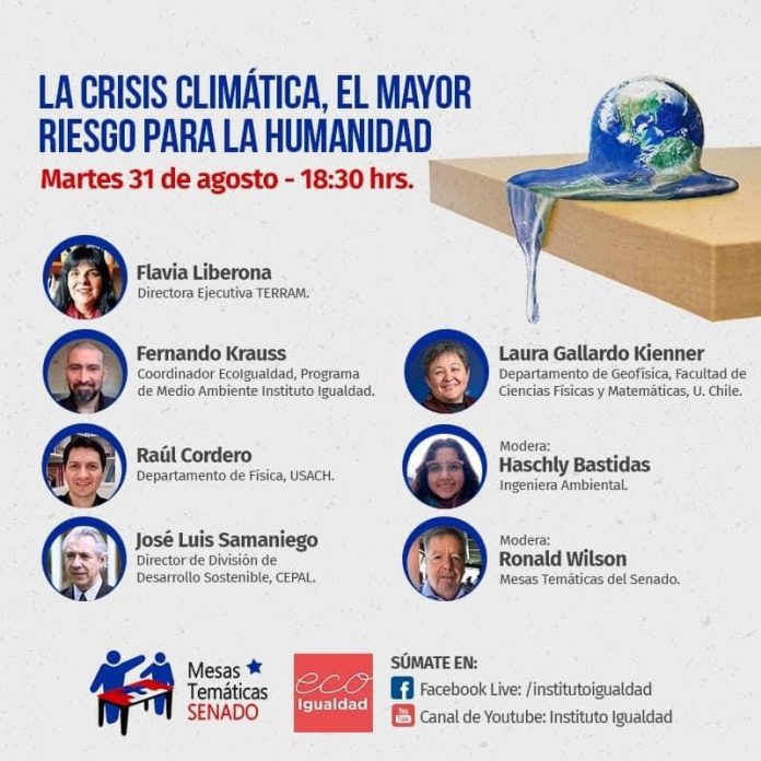 Es por eso que el Programa de Medio Ambiente del Instituto Igualdad y las Mesas Temáticas del Senado invitan este martes 31 de agosto, a las 18:30 hrs., a conversar sobre la Crisis Climática, el mayor riesgo para la humanidad.
