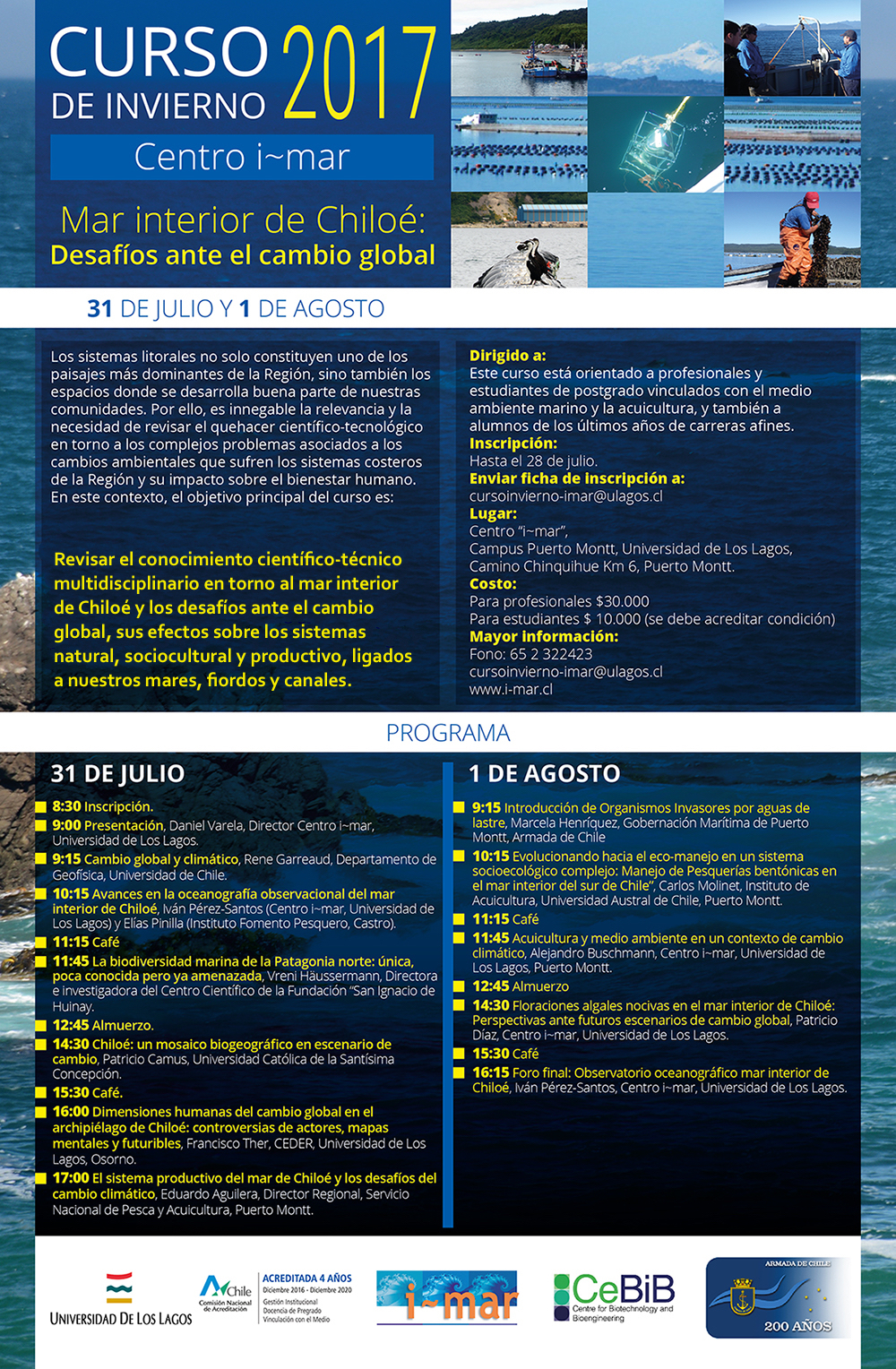 31 de julio-1 de agosto | Curso de Invierno Centro i~mar 2017 «Mar interior de Chiloé: Desafíos ante el cambio global»