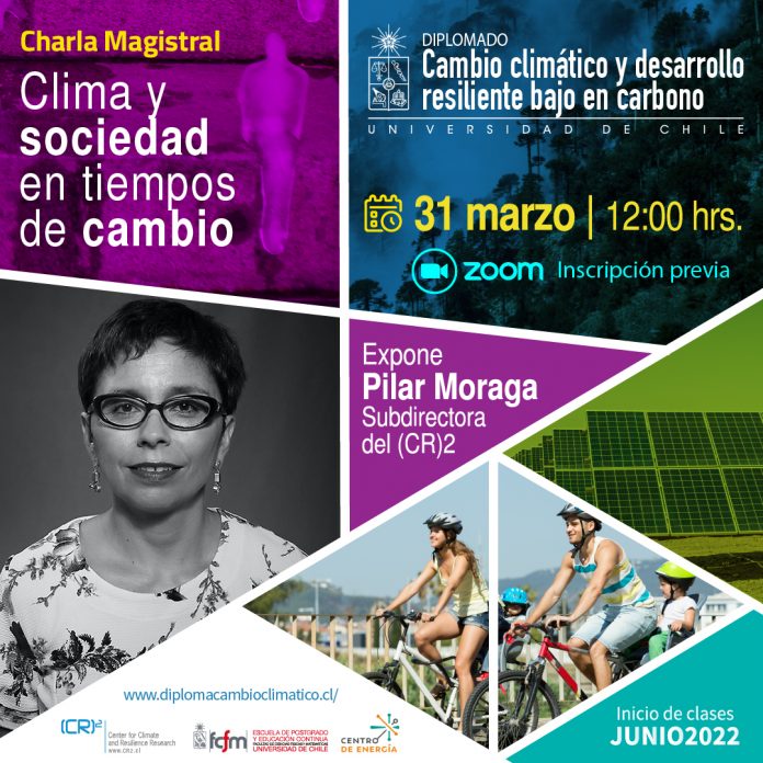 El Centro de Ciencia del Clima y la Resiliencia (CR)2, el Centro de Energía y la Escuela de Postgrado y Educación Continua FCFM U. de Chile, tienen el agrado de invitar a la charla «Clima y sociedad en tiempos de cambio», parte de las actividades del diplomado «Cambio Climático y Desarrollo Resiliente Bajo en Carbono».
