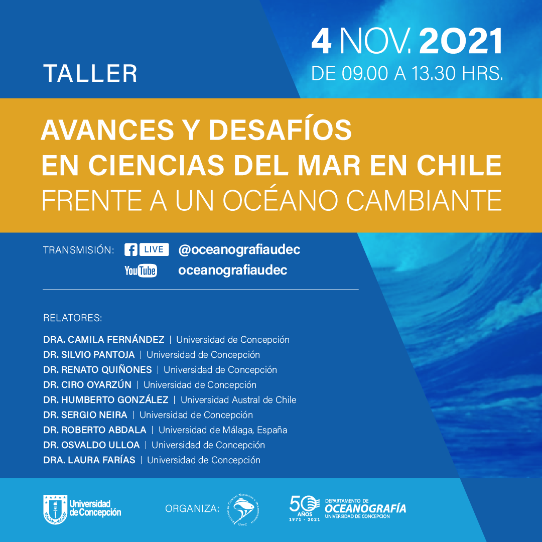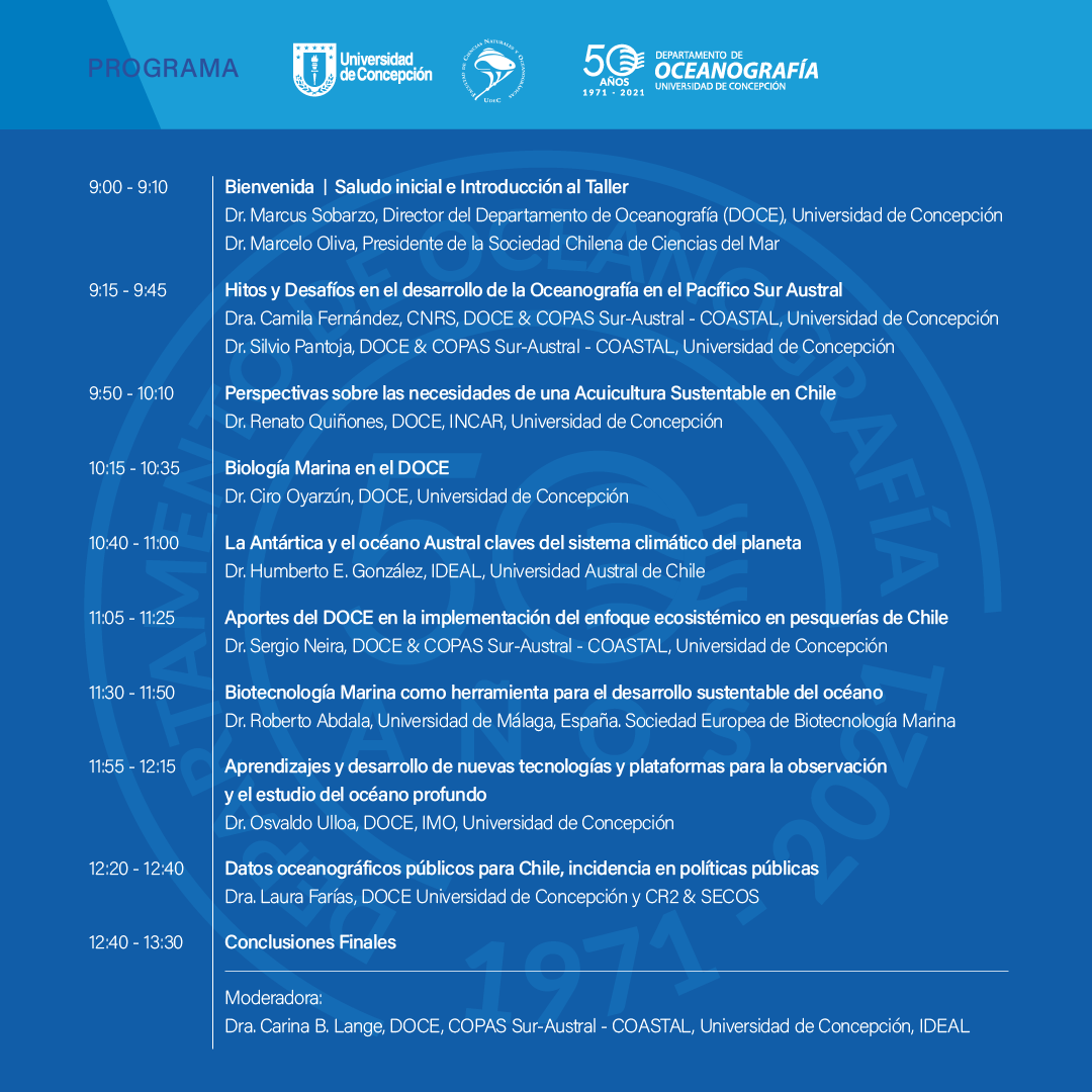 Únete a la transmisión a través de la página de Facebook y del canal de Youtube del Departamento de Oceanografía de la Universidad de Concepción, y revisa el programa aquí:
