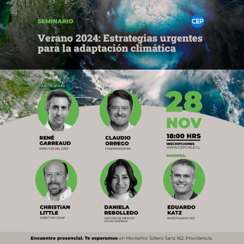 El próximo 28 de noviembre, a las 18:00 horas, se realizará el seminario: «Verano 2024: Estrategias urgentes para la adaptación climática». Esta actividad está organizada por el Centro de Estudios Públicos (CEP)