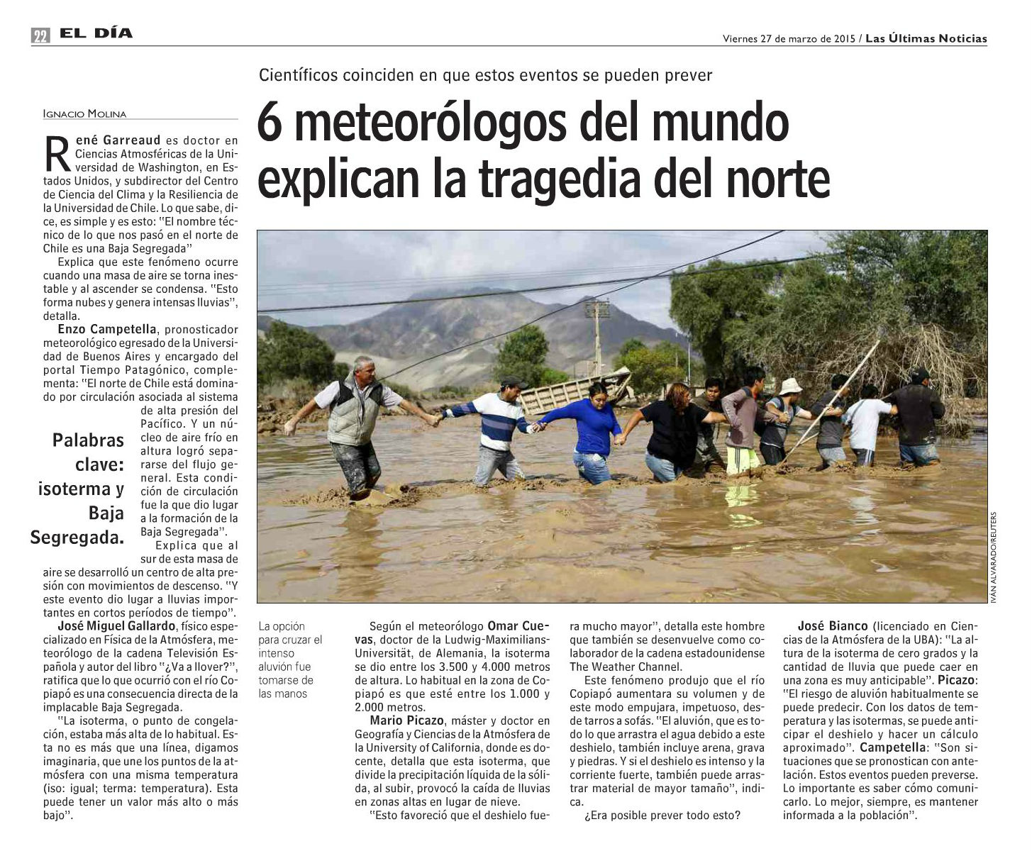 6 meteorólogos del mundo explican la tragedia en el norte (Las Últimas Noticias)