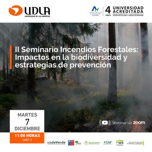 La Facultad de Medicina Veterinaria y Agronomía de la Universidad de Las Américas y CodexVerde, tienen el agrado de invitar al II Seminario Incendios Forestales: Impacto en la biodiversidad y estrategias de prevención.