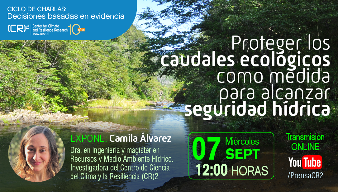 En esta ocasión presentará Camila Álvarez, investigadora del (CR)2, quien realizará la charla “Proteger los caudales ecológicos como medida para alcanzar seguridad hídrica”.