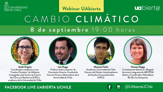 UAbierta UChile tiene el agrado de invitar al webinar «Cambio Climático», espacio de conversación donde se abordarán algunas de las temáticas presentadas durante el curso gratuito y online de UAbierta UChile «Cambio Climático».