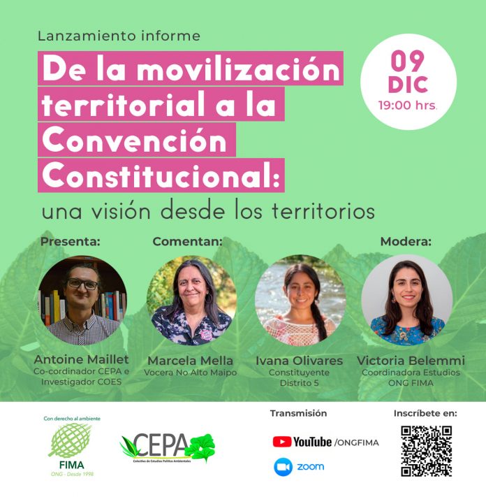 ONG FIMA y el Colectivo de Estudios Políticos Ambientales (CEPA), tienen el agrado de invitar al lanzamiento del informe «De la movilización territorial a la Convención Constitucional».