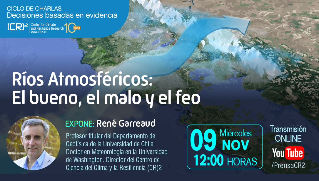 En esta ocasión presentará René Garreaud, director del (CR)2, quien realizará la charla “Ríos atmosféricos: El bueno, el malo y el feo”