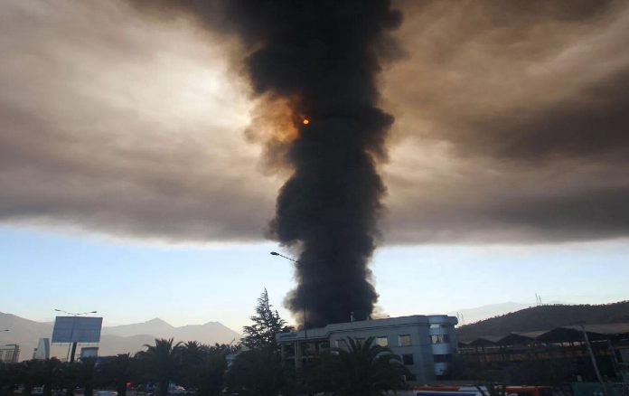 La columna de humo, de monumentalidad atómica, comenzó a erigirse pasadas las seis de la mañana, poco antes de que la alarma llegara a los cuarteles de las compañías de bomberos de Quilicura.