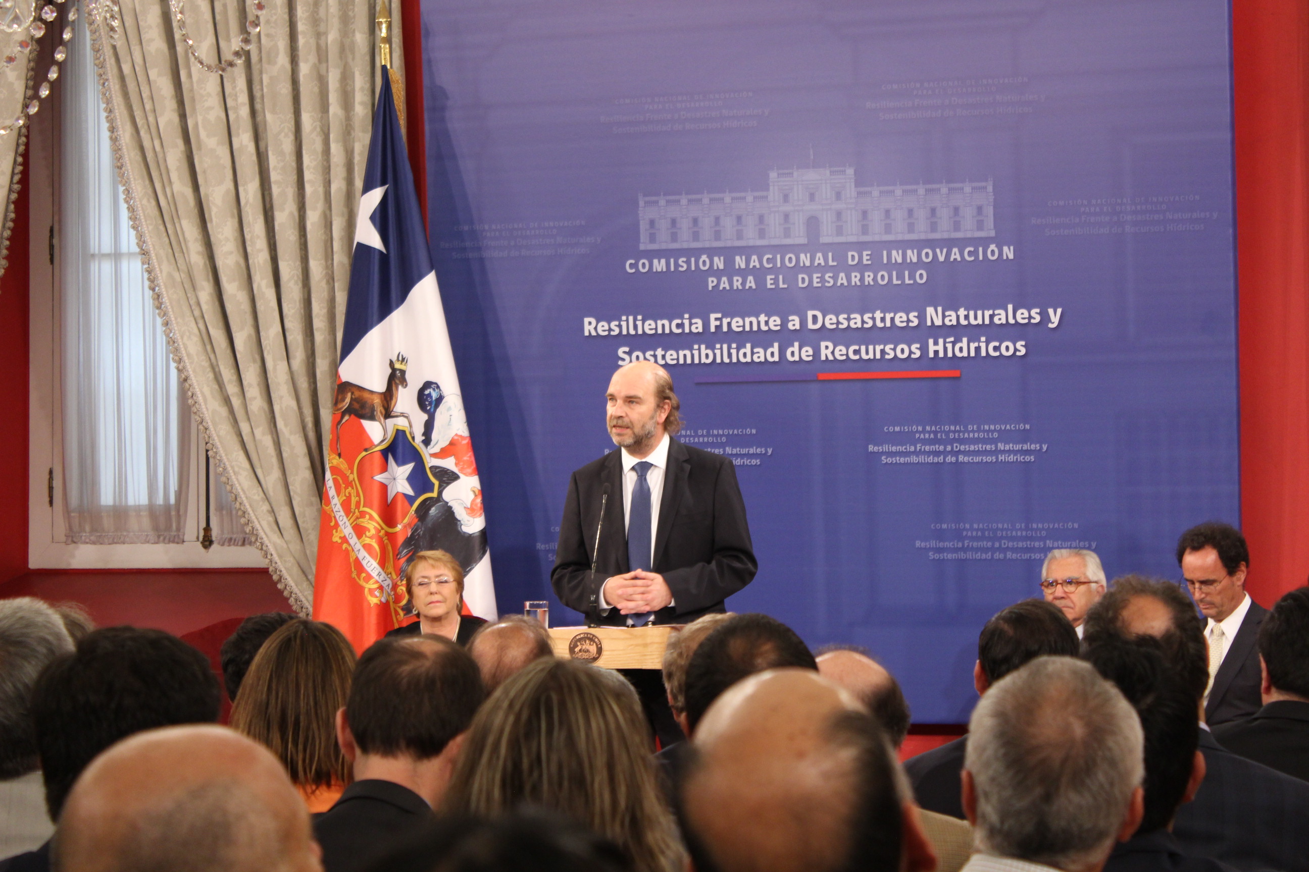 Ante esta realidad, señaló que “la escasez de agua y los efectos de los desastres naturales no tienen por qué ser una fatalidad en nuestro destino. Chile está frente a retos que puede enfrentar con iniciativas propias y respuestas eficaces”. Esto, agregó, “tiene que ver con la forma como habitamos el territorio; con la rapidez con que adaptemos nuestro modelo productivo; con la manera en que hagamos buenas políticas públicas en vivienda, agricultura o en infraestructura; pero también con la manera en que sostengamos los esfuerzos e inversiones en el marco de la cooperación público-privada para que la investigación y la innovación dialoguen en forma permanente con la sociedad”.