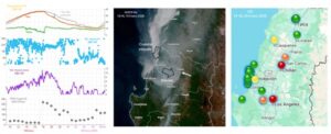 Varios incendios forestales se iniciaron en el centro-sur de Chile (regiones de Ñuble, Biobío y Araucanía) durante la tarde del sábado 17 de enero de 2026, como se observa en las imágenes GOE19, visible que incluye focos de calor (Fig. 1). El incendio cerca de Concepción fue causado por tres focos de ignición cercanos que se fusionaron en un solo, conocido como el incendio de Penco-Lirquén en 36,7°S, 73°O.