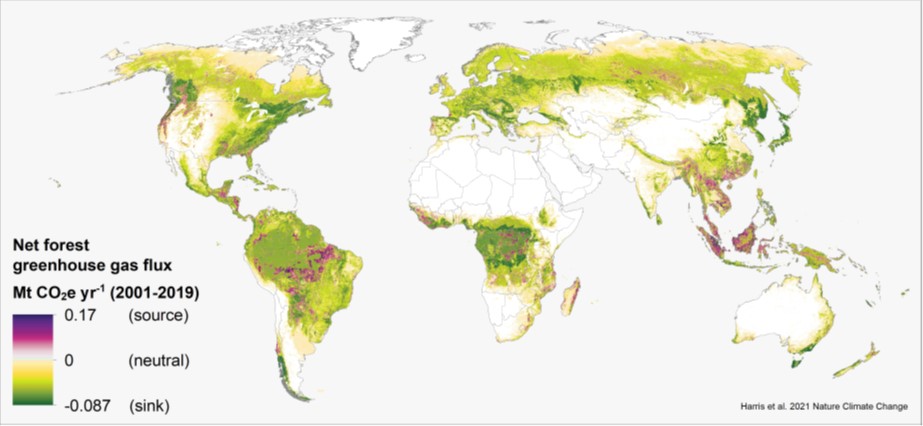Harris, N. L., Gibbs, D. A., Baccini, A., Birdsey, R. A., De Bruin, S., Farina, M., Fatoyinbo, L., Hansen, M. C., Herold, M., Houghton, R. A., Potapov, P. V., Suarez, D. R., Roman-Cuesta, R. M., Saatchi, S. S., Slay, C. M., Turubanova, S. A., & Tyukavina, A. (2021). Global maps of twenty-first century forest carbon fluxes. Nature Climate Change, 11(3), 234-240. https://doi.org/10.1038/s41558-020-00976-6