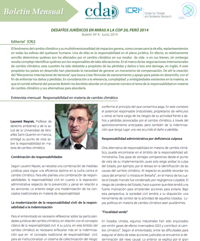 Acá te dejamos el cuarto número de nuestro Boletín “Desafíos Jurídicos en miras a la COP20, Perú 2014″ , preparado por el equipo de Dimensión Humana de nuestro Centro.